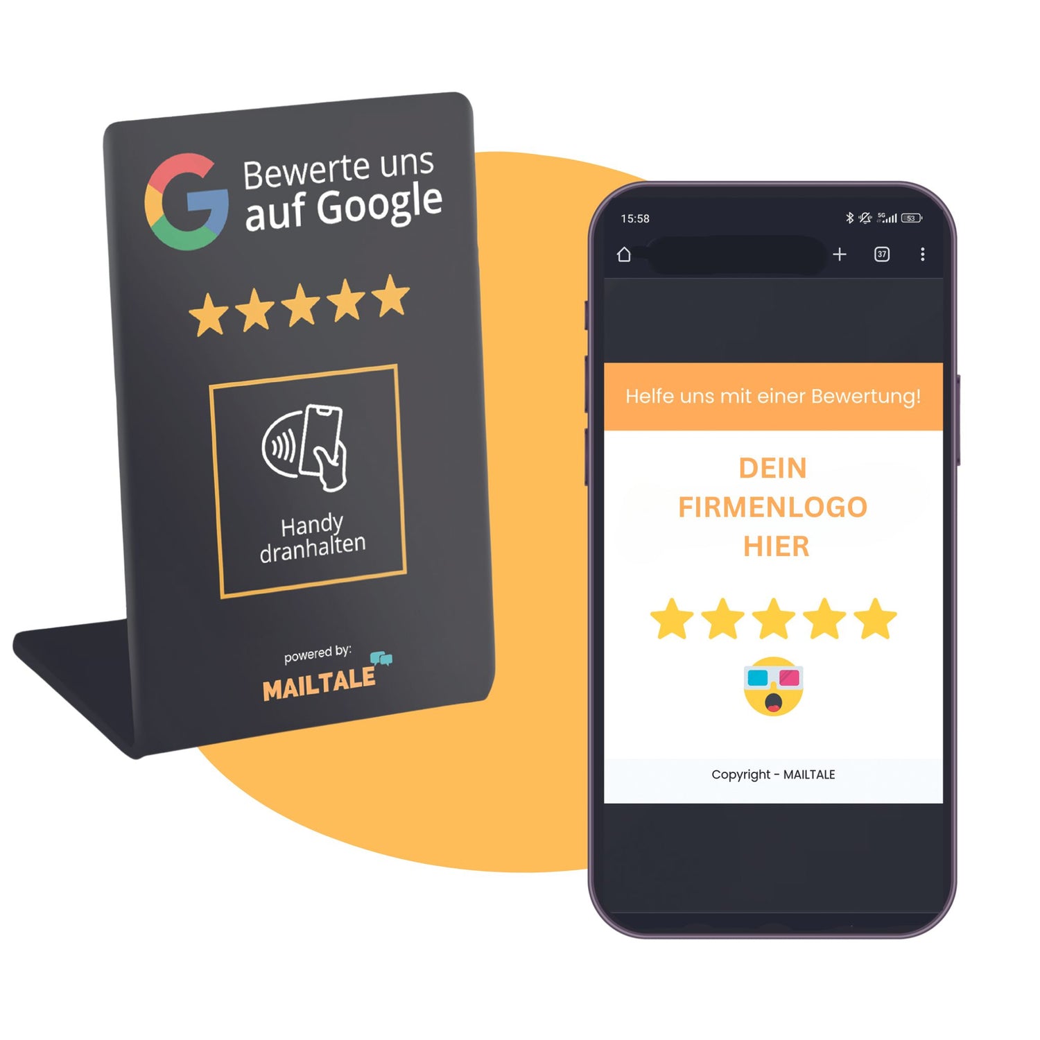 Der Unterschied zu anderen Aufstellern liegt in dem System, das wir verwenden. Bei anderen Aufstellern gelangt der Kunde direkt zu Google. Wir haben jedoch einen Zwischenschritt eingefügt. Dadurch gehören negative Bewertungen, die nicht nachvollziehbar sind, der Vergangenheit an.