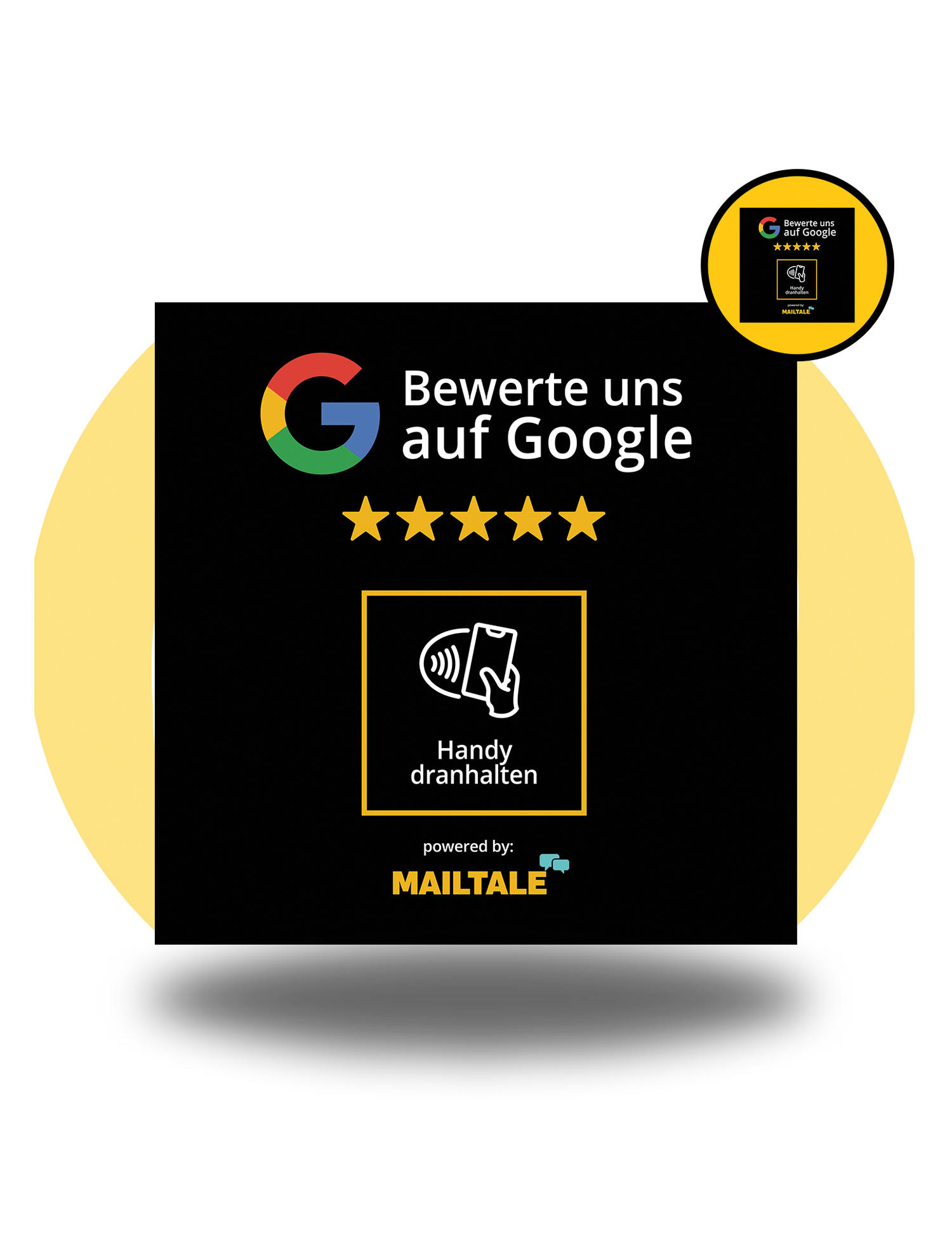 Der Unterschied zu anderen Aufstellern liegt in dem System, das wir verwenden. Bei anderen Aufstellern gelangt der Kunde direkt zu Google. Wir haben jedoch einen Zwischenschritt eingefügt. Dadurch gehören negative Bewertungen, die nicht nachvollziehbar sind, der Vergangenheit an.